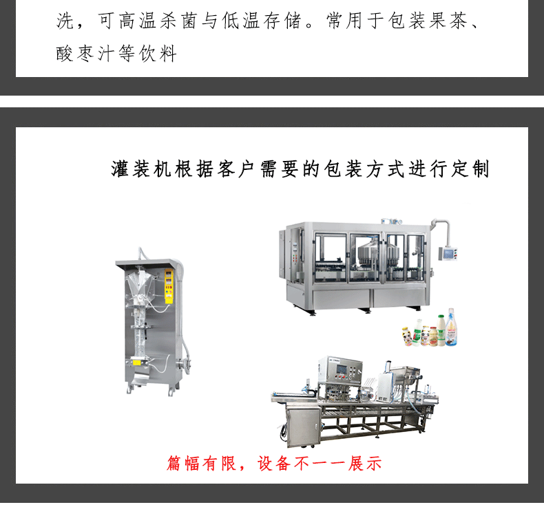本公司提供成套飲料灌裝生產線灌裝設備,除茶飲料生產線外,還提供純凈水、礦泉水生產線,果汁飲料生產線,果蔬汁飲料生產線,啤酒生產線,酵素生產線,果醋果酒生產線,碳酸飲料生產線等等。歡迎各地老板來我公司實地考察,詳情請致電18072010088(浙江金奔機械制造有限公司) www.jbmach.com。您的光臨是對我們最大的肯定,我們將根據您的實際生產要求,為您制定出專業的飲料生產線設備配備方案。